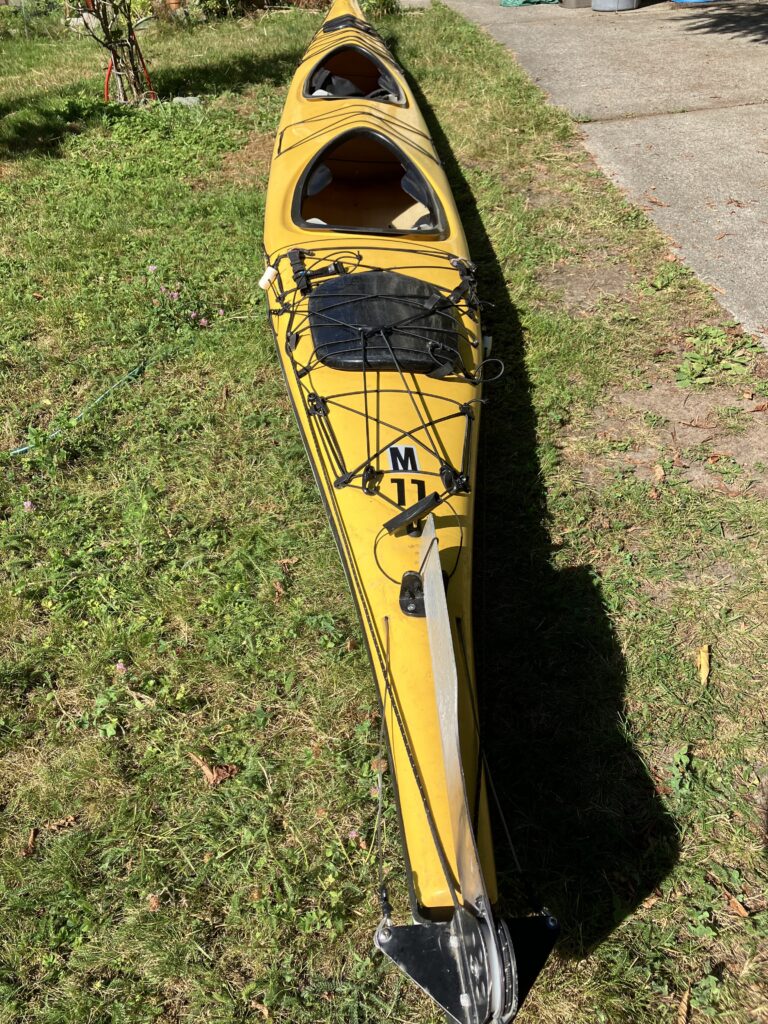 Sea kayaks: We have only 2 Boréal Design fibreglass singles; 1 -16ft Narwhal 24″ wide and 1-17ft Alvik, 23 ” wide, both having 2 hatches each and rudders.